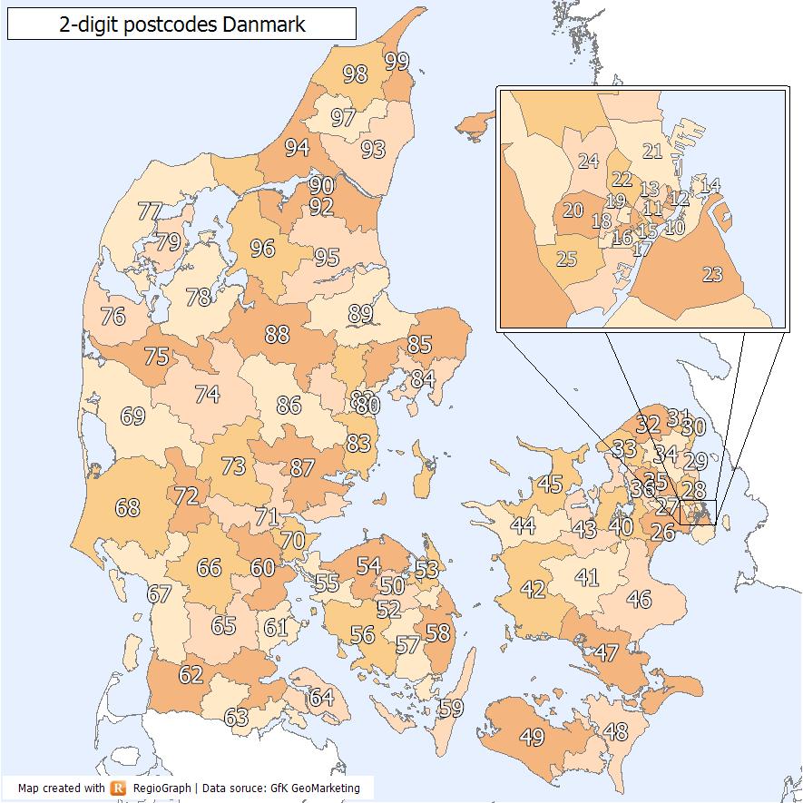 Denmark postcode map